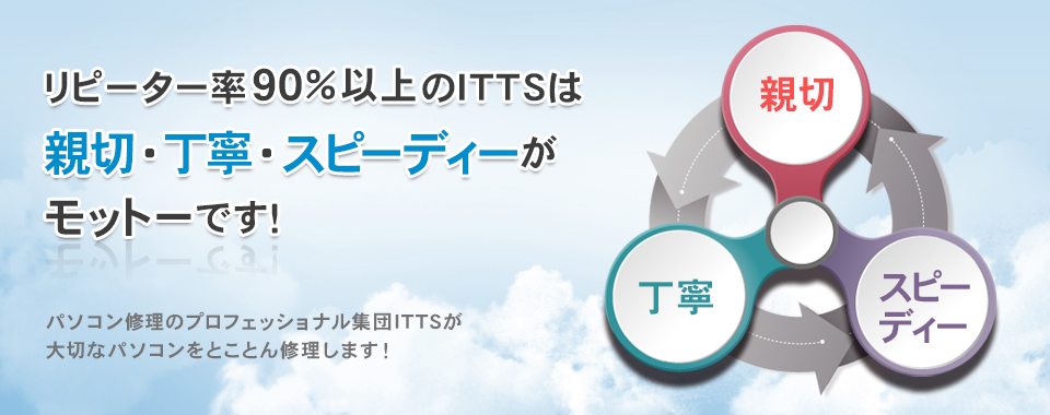 データ復旧大阪ITTSではまずパソコン修理の前に症状を出来るだけ詳しくお聞きして、無料出張させていただき、無料診断させていただきます。その場でスタッフがお修理、データ復旧のお見積もりと同時に、ご予算をお聞きします。